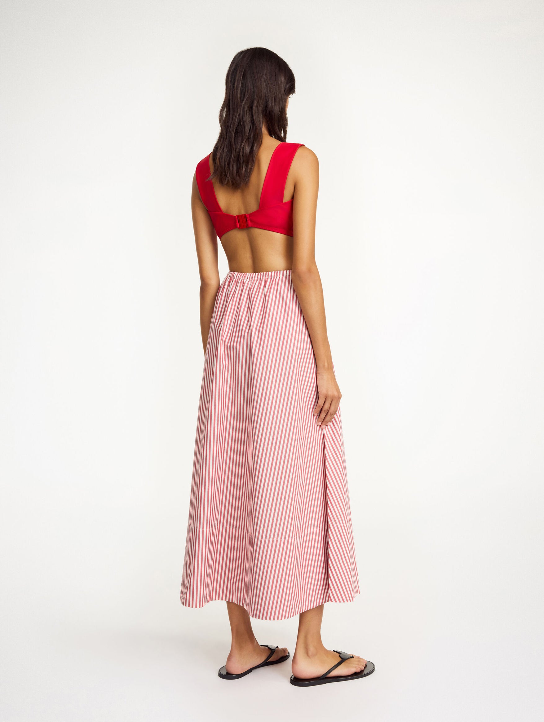 When wanting a stand-out poolside look, opt for the Belira Bikini Top from By Malene Birger. Wide straps, a buckle closure and a flattering cut-out neckline allow you to fully focus on relaxing whilst looking your best in the chilli red hue.
