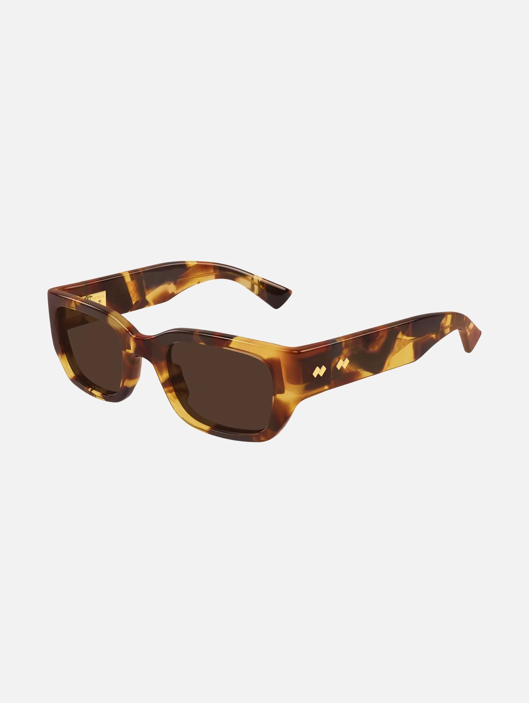 Step into elevated understatement with the BV1400S from Bottega Veneta. Its rich havana-brown acetate frame is sculpted into a timeless silhouette that flatters the face with clean, elegant lines. The warm brown lenses soften light while adding subtle depth, perfect for both bright summer days and city strolls at dusk.