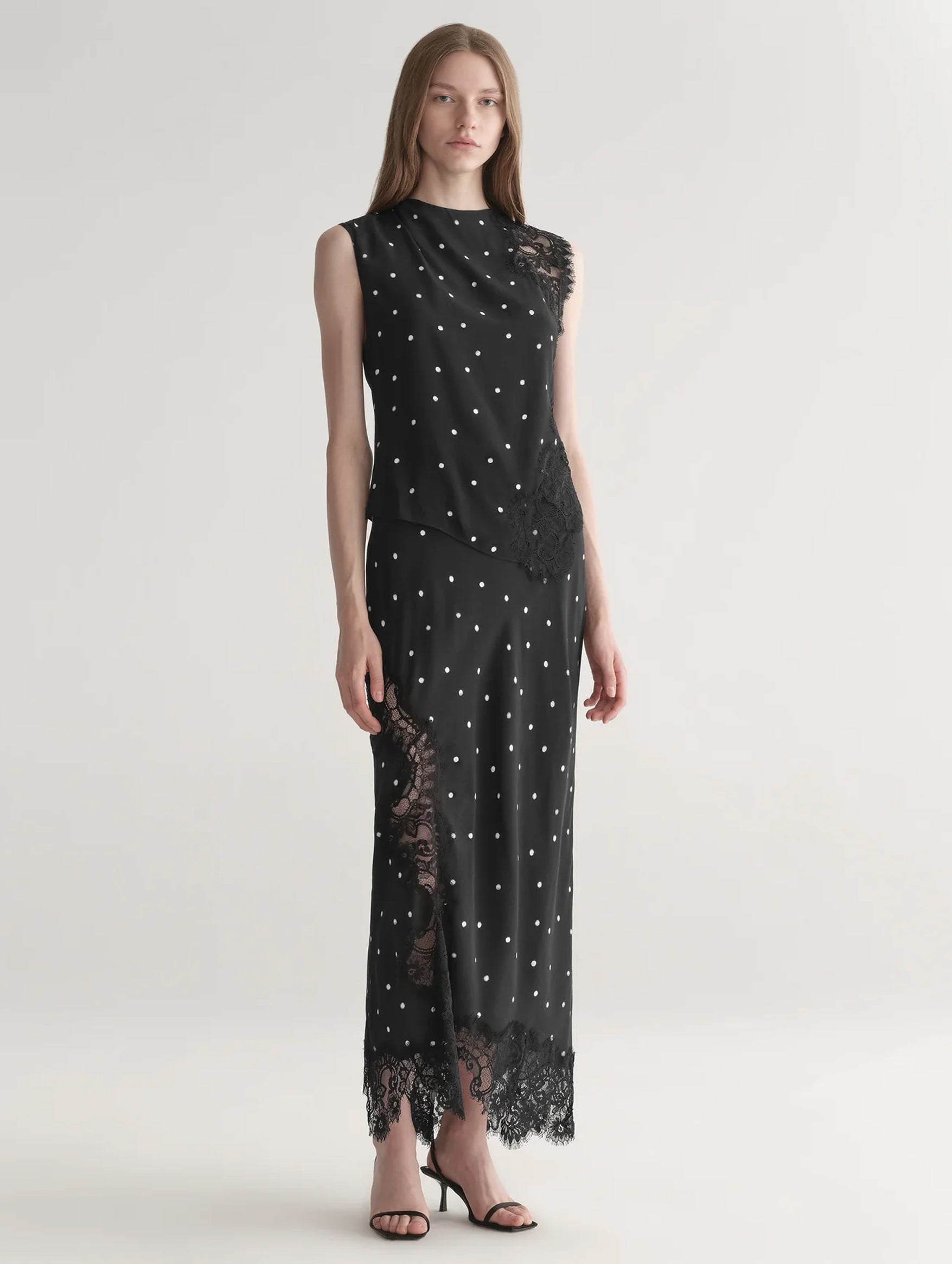 The A.L.C Gracie Top is an artful blend of playful pattern and polished tailoring. With its fluid crepe construction and delicate lace-trim detailing, it drapes elegantly across the silhouette while making a subtle statement. Sophisticated yet relaxed, this top moves effortlessly from boardroom refinement to evening ease.