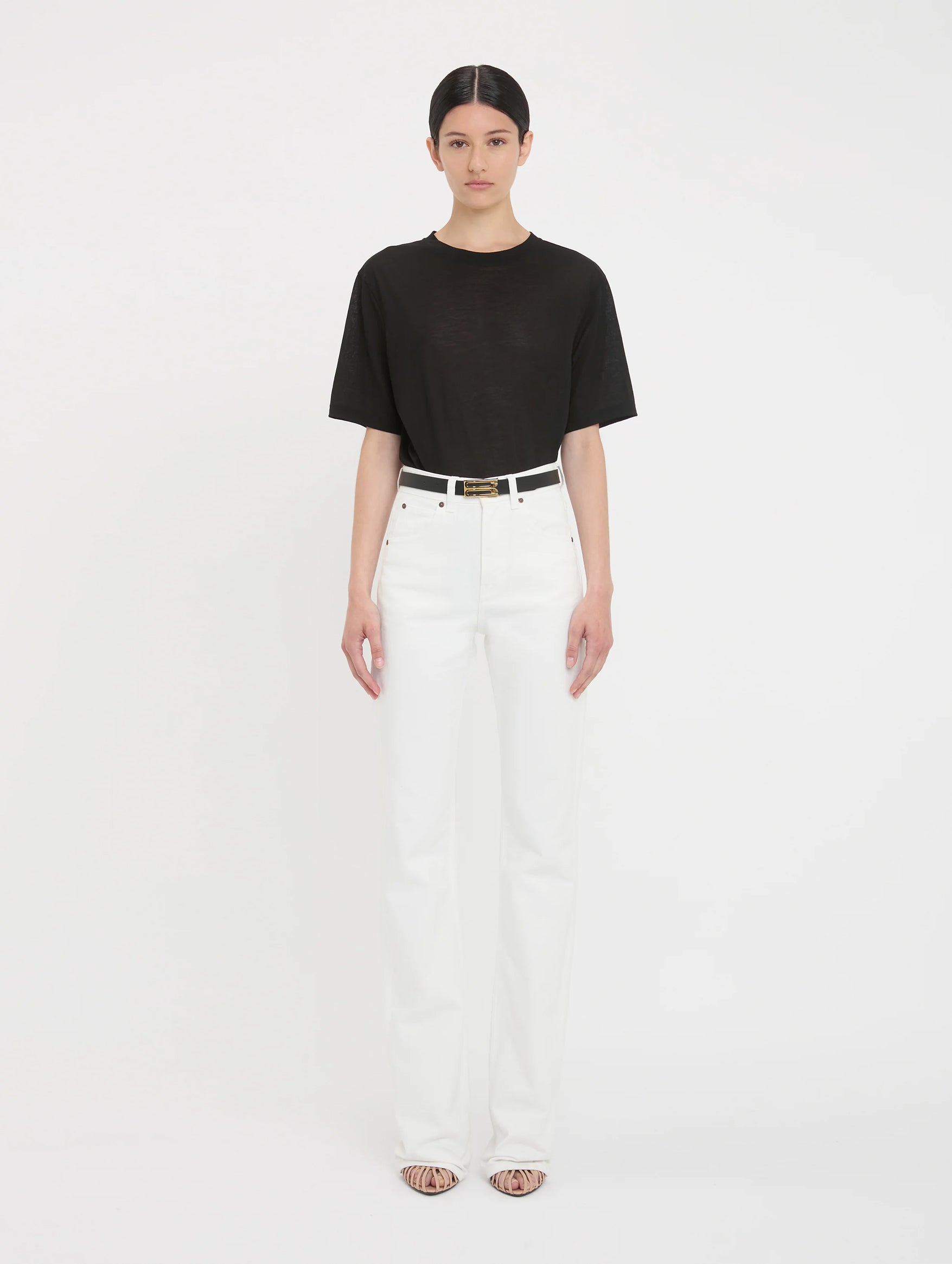Popular for their relaxed fit and laid-back look, the Julia Jean from Victoria Beckham is the summer denim you will be reaching for throughout every season. Crafted from soft cotton denim, it has a figure-flattering high waistline and an elongating straight leg. Presented in an chic white wash, it has discrete design details including a silver branded denim shank button and copper branded rivets, tobacco topstitching and a branded leather patch at the back of the waist.