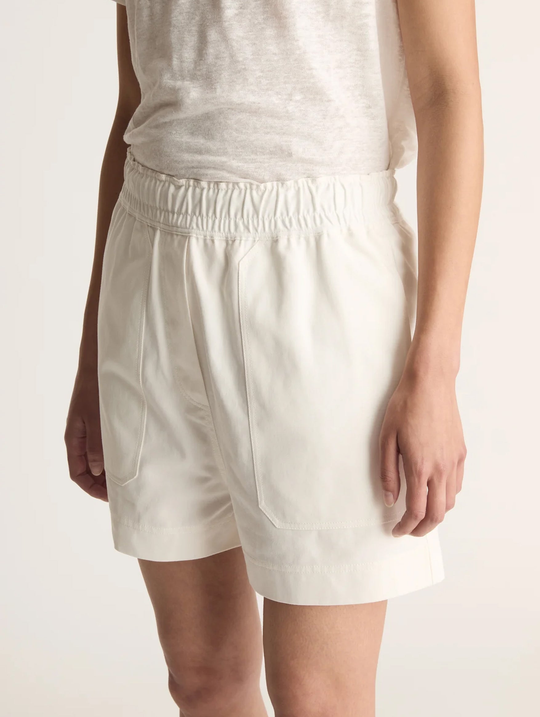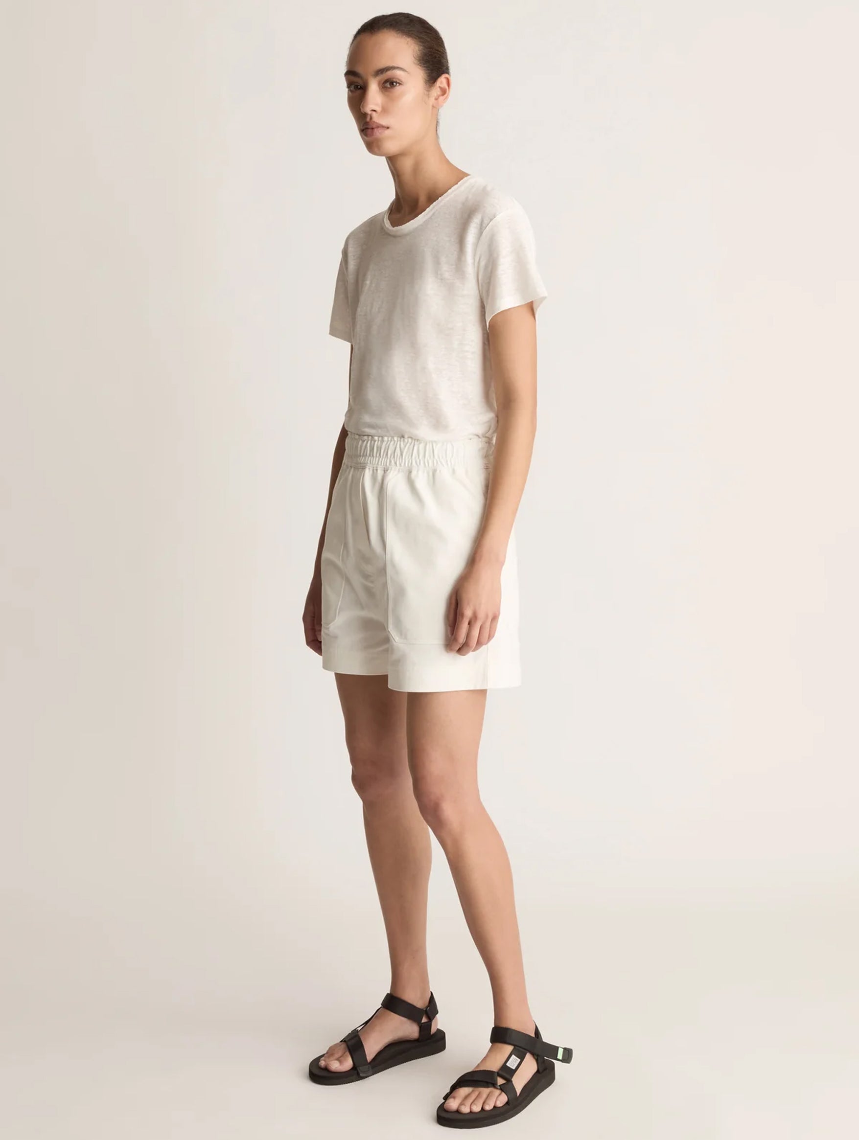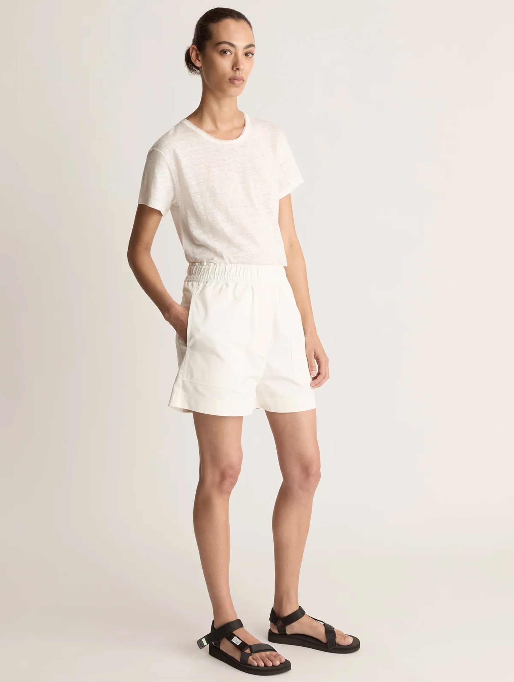 Simple summer styling has never been so chic with the LM Drill Short in Natural. A seasonless shape and is made from 100% organic cotton drill these shorts have an elasticated waist and are fitted with an inverted drawcord that's designed to fall over the waistband. Boxy throughout, these Lee Mathews shorts finish mid-thigh and have deep side pockets. Pair with the matching short tee for a monotone moment.
